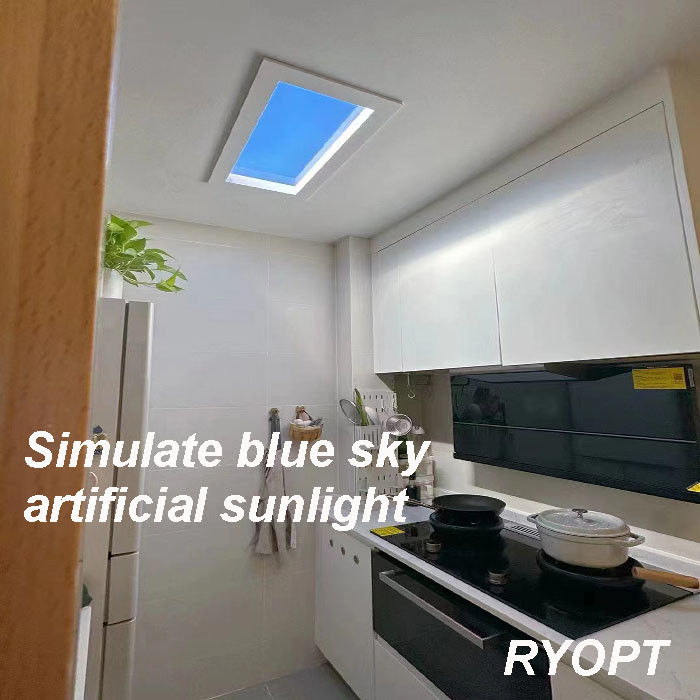 An artificial sunlight skylight, a ceiling panel light, also known as a smart daylighting system, is a technology that brings simulated sunlight into interior spaces using various techniques. It aims to replicate the illumination and qualities of natural sunlight, providing a source of bright and natural-looking light indoors.